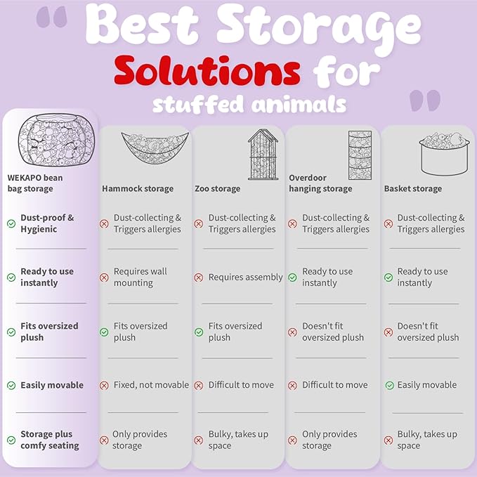 - Wekapo Puts Customers First - Wekapo Stuffed Animal Storage Bean Bag Chairs offer a 90-day unconditional return or exchange policy. Wekapo is dedicated to address any product/service issues and is committed to delivering a 5 star experience for all buyers.