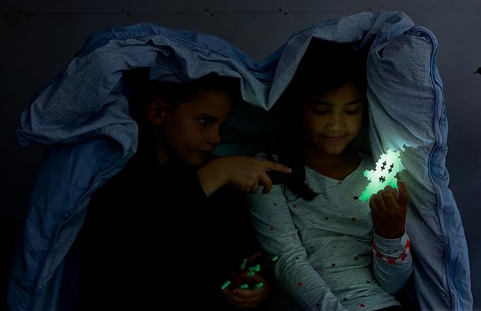 - CONNECT IN EVERY DIRECTION: Open play set includes a reusable, travel-friendly tube, an idea guide booklet, and 500 pieces of Glow Mix (Glow, Neon Blue, Neon Yellow, Neon Orange, Black) to spark creativity! Each Plus-Plus piece measures 3/4" x 1/2".