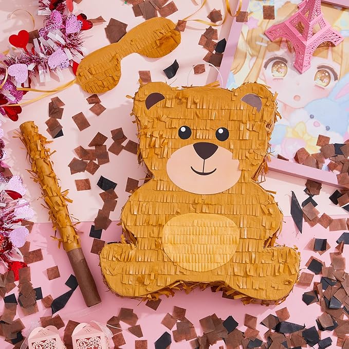- Bear Piñata Set: the package contains 1 brown bear piñata , 1 paper blindfold, 1 wooden piñata bat, and 1 bag of confetti, a cute and thoughtful combination to satisfy your various needs, boosting the party atmosphere