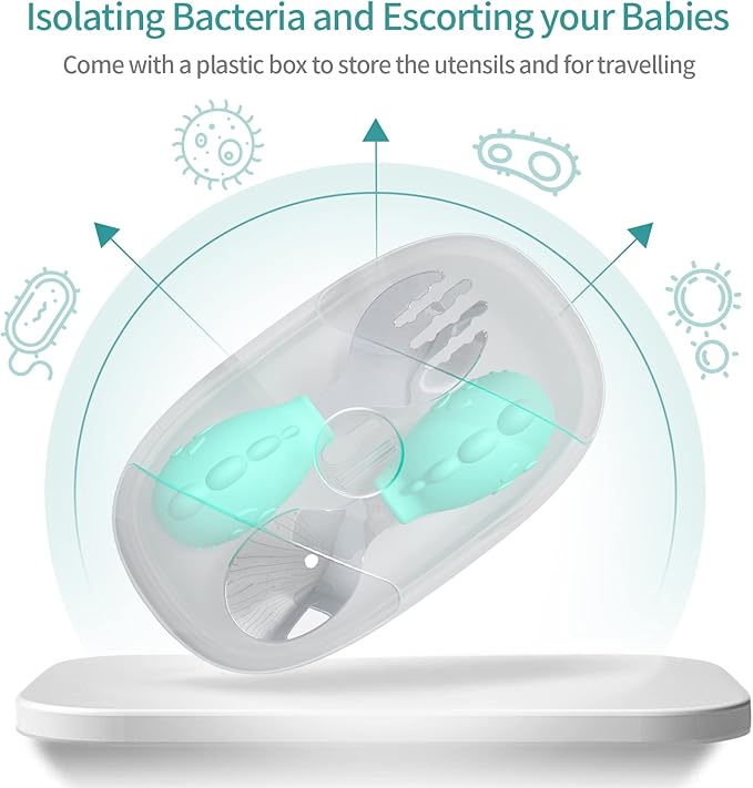 - 【Portable and Clean】Toddler Spoon and Fork Set with storage box can keep tableware hygienic and healthy. Please wash, sanitize and put in boiling water for 1-2 minutes before and after use. Easy to clean and dishwasher safe.