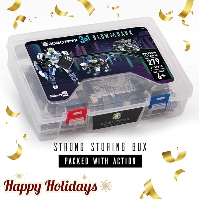 - 【A ton of Pieces for a ton of Fun!】Action-packed robot building construction fun for kids is endless with 279 pieces to create three forms including a Robot , a K-9 Unit, and Police Car. A kid can have fun building the figures, creating stories for them, and customizing them with glow-in-the-dark, stickers. Use buildable blocks to create an army of super outer space robotic heroes. Includes instructions to help kids learn how to put the pieces together.