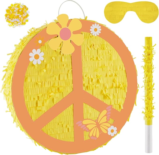 - Nice Combination: you will receive 1 hippie peace sign pinata, 1 blindfold, 1 pinata stick and 1 pack of confetti, such a complete and rich combination for you to use at the party according to your various preferences, impressing your guests with fun themes and party games
