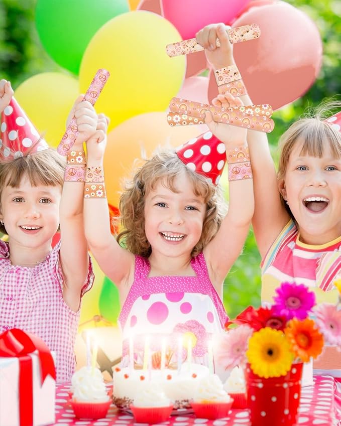 - WIDE RANGE OF USAGE - These one-size-fits-most hippie bracelets are convenient and easy to use. Just simply slap the bracelet on your wrist, and it will form a comfortable fitted grip based on your wrist size. Perfect retro party favors for classroom activity, stage show, costume party, birthday parties. Great ideas to use these bracelets as photo booth props or goodie bags fillers.