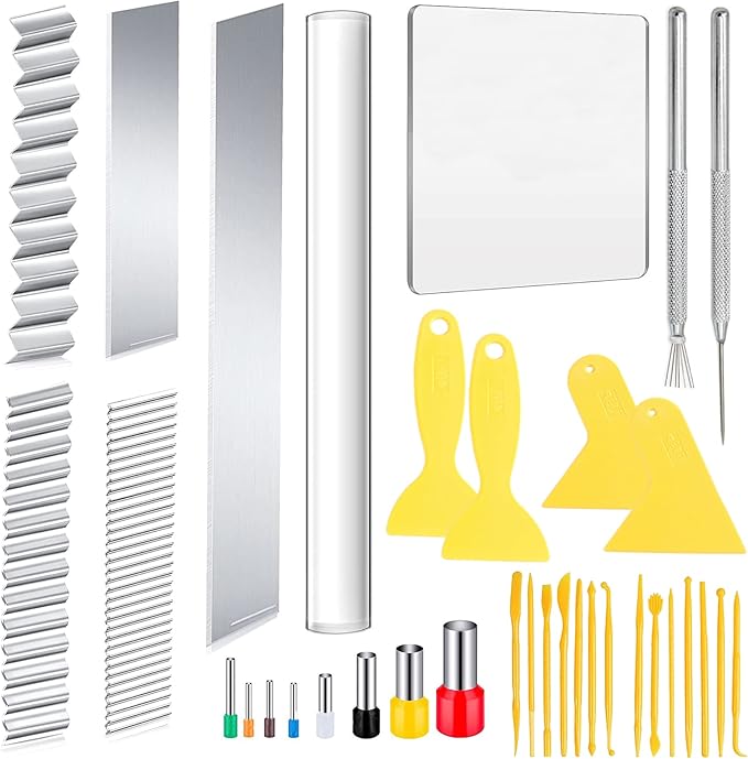 - 35 PCS Polymer Clay Cutting Set: 5 x clay slicer blade, 8 x round clay cutters of different sizes, 14 x plastic crafts clay modeling tool, 4 x scraper, 1 x acrylic clay roller, 1 x acrylic sheet, 2 x clay needle tools.