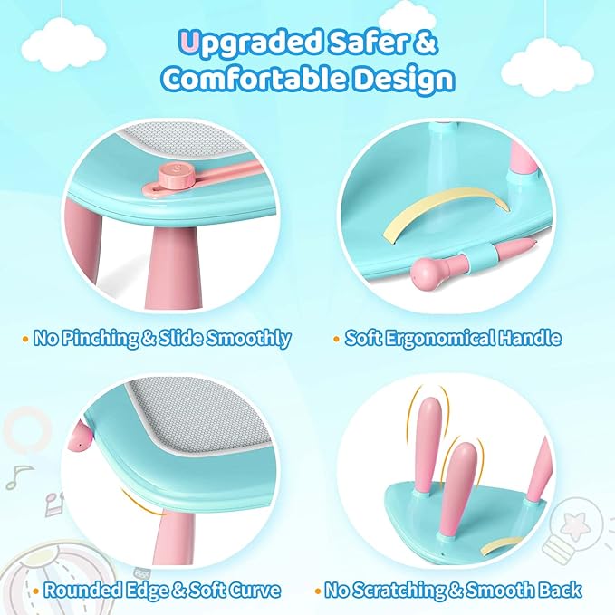 • Sturdy Drawing Table or Doodle Board: Designed with a durable screw-on system and premium legs, this drawing board is built to handle heavy use without a hint of wobbling or risk of breakage. Plus, the table’s legs are easily detachable and adjustable in three different heights, offering the perfect fit for your little artist’s comfort. Let their creativity flow with a stable, flexible setup that grows with them—ideal for endless hours of drawing fun!