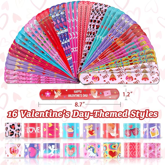 - 💝48Pcs of Valentine's Day Slap Bracelets: 16 Valentine styles of slap bracelets, 48 Valentine's slap bracelets in total, enough for you to share with your friends. Wear the slap bracelets with Valentine's elements together, and enjoy a happy Valentine's party.