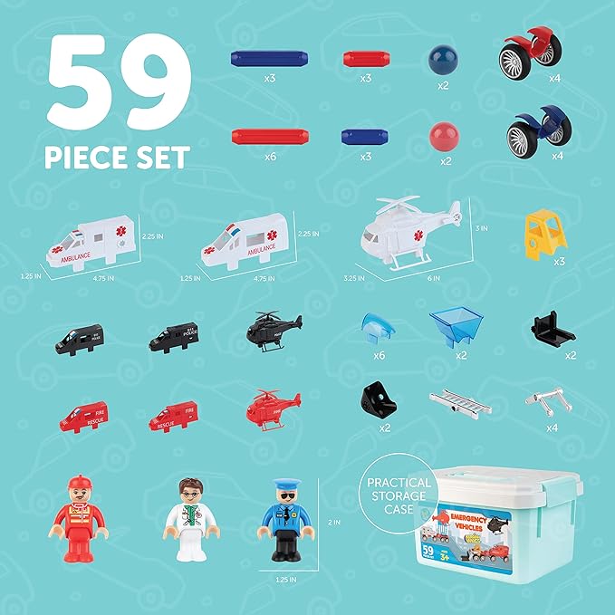- STIMULATING COLORS & DESIGN. With vivid colors and varied forms, this magnetic emergency vehicle set attracts kids to have more play time and enjoyment while carrying them around to any space or room. Kids can even have lesser screen time and more relevant hands-on experiences.