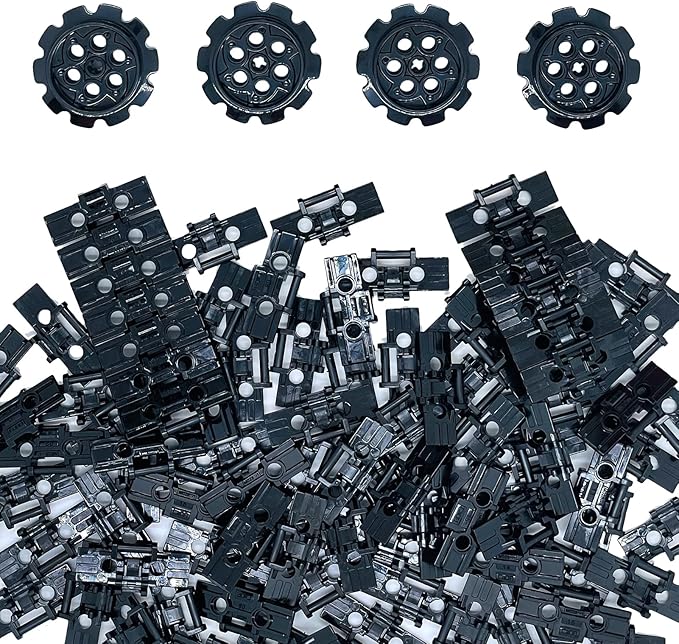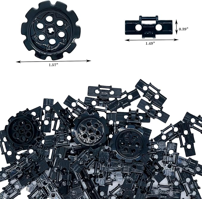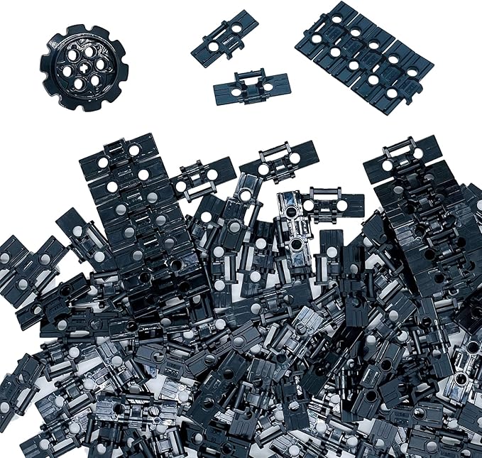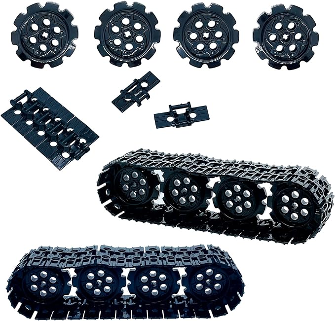 - Includes 100 pcs Tank Track,8 pcs big wheels.