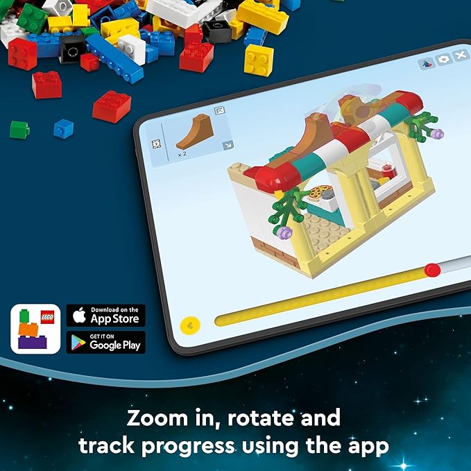 - This travel toy includes accessories for imaginative play, including a toy bone for Nana, a white LEGO minifigure and lots of decorative stickers