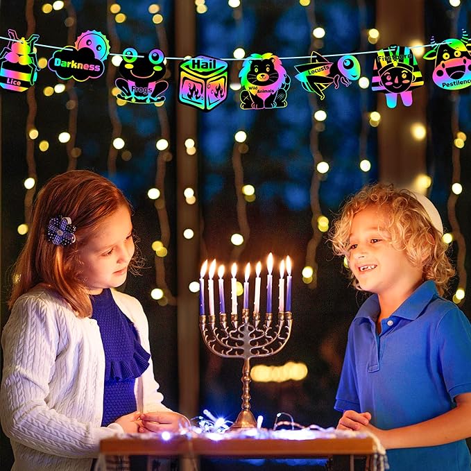 WATINC 60pcs Passover Scratch Paper Art Kit with 10 Plague for Kids, Magic Color Scratch Off Cards Craft DIY Animals Drawing Notebook, Classroom School Birthday Party Favor Hanging Decoration