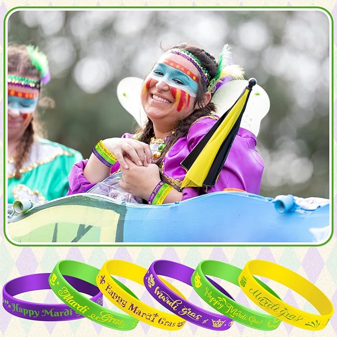 - Beautiful Visual Effects: you can get the praise of others with these Mardi Gras silicone wristbands in the carnival parade, which will get cheer and joy with precious memory, creating a celebratory atmosphere and giving you beautiful visual effects