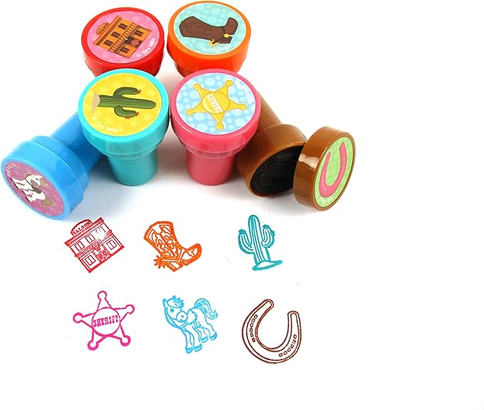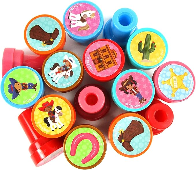 TINYMILLS 24 Pcs Western Black Cowboy Cowgirl Stampers for Kids Birthday Party Goody Bag Filler Pinata Filler