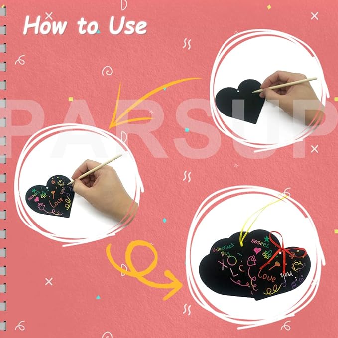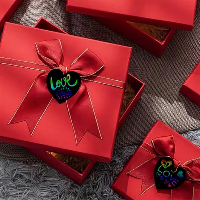 - Valentine's Day Scratch Paper 96 Pieces Art Rainbow Heart-shaped Scratch Craft Art with Wooden Styluses and Ribbons for Kids Decorative Arts and Crafts Valentine's Day Wedding