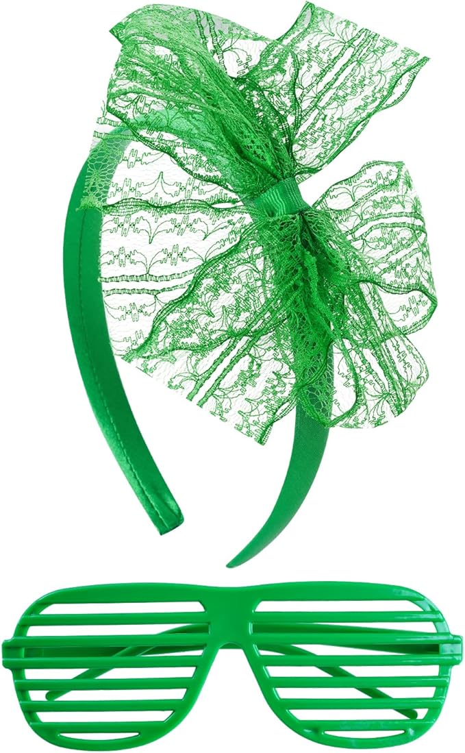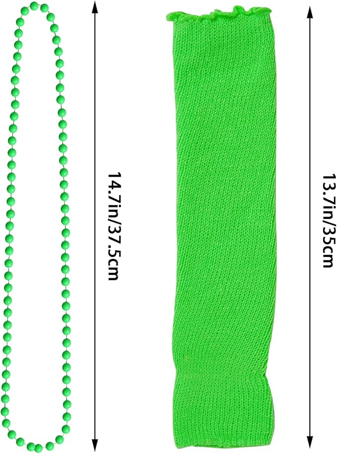 - Package Content: 1 pc dark green yarn skirt(waist wide: 6.8"/17.5cm, which can be stretched to17"/43cm), 1 pair long gloves(10.2"/26cm), 1 pair of dark green leggings socks(13.7"/35cm), 4 pcs solid color necklace(14.7"/35cm), a pair of shutters glasses and 1 pc lace headband bow.
