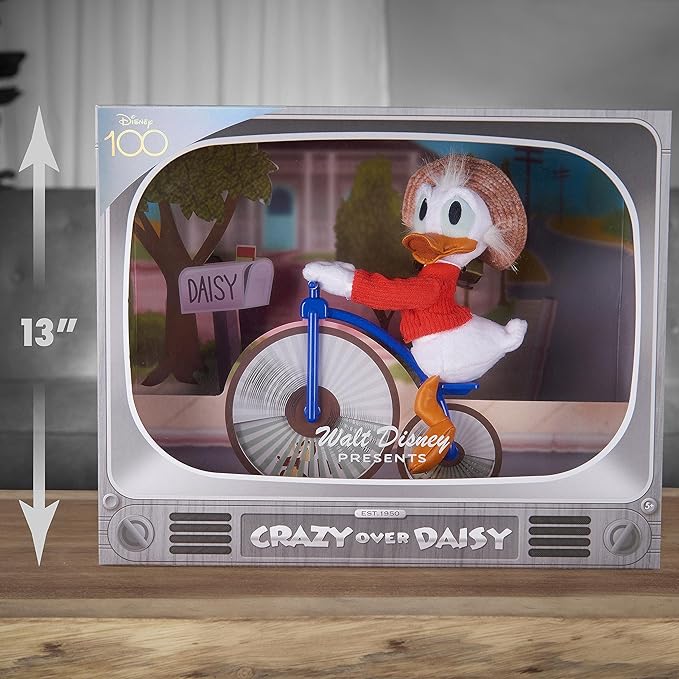 - A Century of Storytelling: This 13-inch, vintage TV-inspired diorama features Donald Duck riding a high-wheel bicycle to visit Disney Daisy Duck, just like he did in the classic 1950s cartoon.