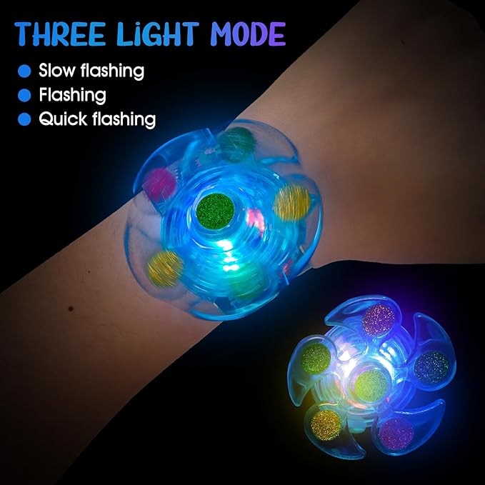 - [Valentines gifts for kids]: Characterized by its rotation, these Halloween fillers break the conventional features of play bracelets that can only bring light and flicker. Its constant rotated catches attention. For children, their attention can be focused on the spinner. And for adults, the distraction of attention to the glow in the dark party supplies can help them break away from troubles, relieve anxiety, and release pressure to some extent. This is what you want, more fun and less pressure.