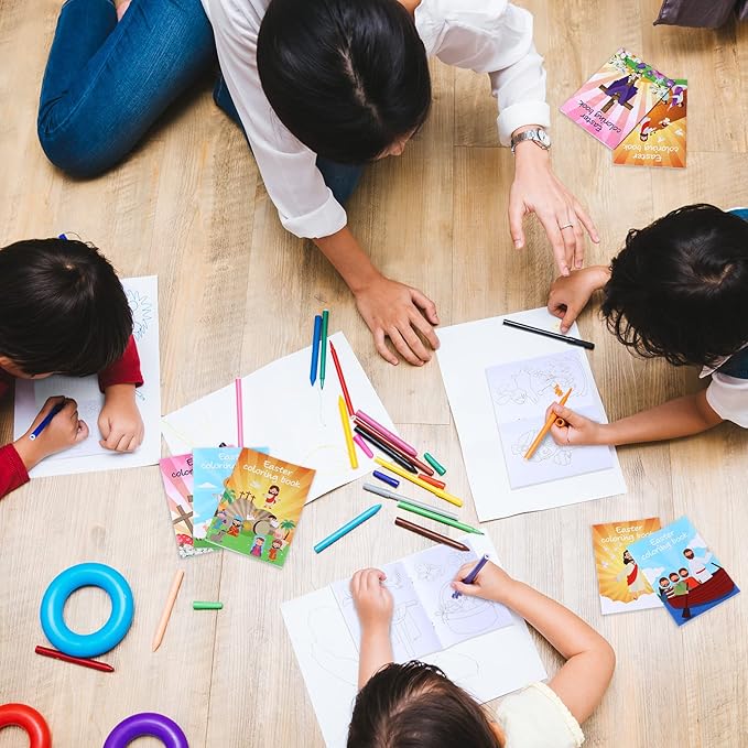24 Pcs Easter Coloring Books Bulk Kids Religions Mini Color Booklets DIY Art Drawing Christian Bible Easter Party Favors Gifts for Boys Girls School Classroom Stuffer Activity Decorations