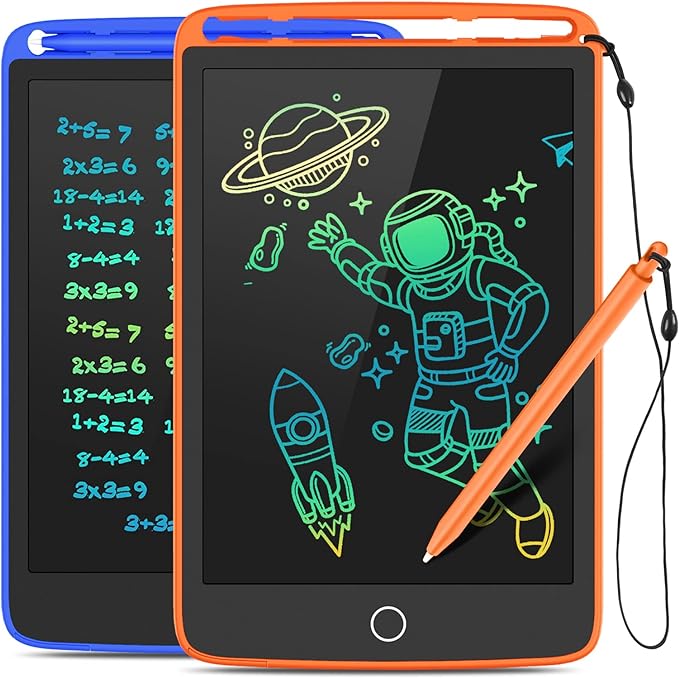 2 Pack LCD Writing Tablet, Colorful Screen Doodle Board 8.5 Inch Drawing Tablet for Kids, Learning Toys Birthday Gifts Travel Activity Games for 3 4 5 6 Year Old Boys and Girls Toddlers(Orange Blue)