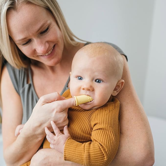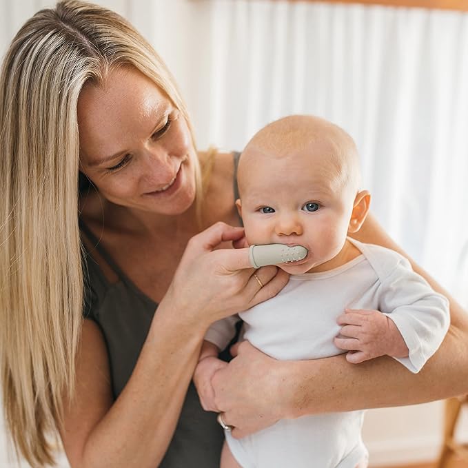 - SILICONE FINGER TOOTHBRUSH 3M+. Teach baby healthy oral hygiene habits with the soft, 100% silicone toothbrush.