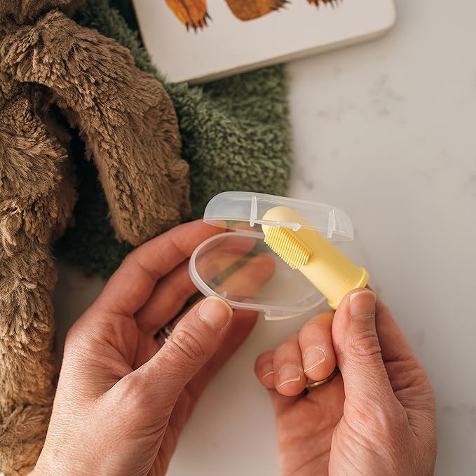 - BABY TOOTHBRUSHES WITH CASE. Included storage case protects the baby finger toothbrush when not in use.
