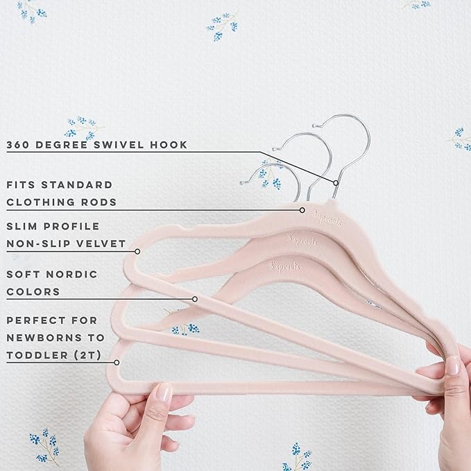 - βοΈ π¦π§π¬πππ¦π π¦π£πππ π¦ππ©ππ₯: Maximize closet space with the slim profile of 3 Sprouts Velvet Kids & Toddler Hangers, designed for easy organization and quick access to your little one's clothes; available in soft & modern nordic colors to effortlessly blend with your nursery dΓ©cor, these hangers bring both style and functionality to reflect your baby's calm, gentle environment.