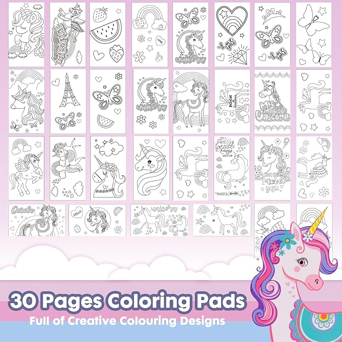 Unicorn Coloring Book Set with Coloring Pages & Colored Pencils, Art Supplies for Kids Ages 4-6-8, Arts Crafts Travel Coloring Kit for Girls 4 5 6 7 8 Year Old Birthday Gift
