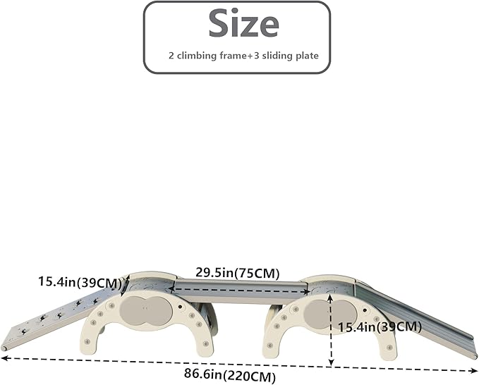 - ❤️ [Perfect climbing toy for children] This set of Montessori climbing suit has four functions. One side of the skateboard can be turned over as a slide and the other side can be used as a rock climbing, and the arch can be turned over as a balance plate or a rocking chair. A variety of play methods create a variety of fun.