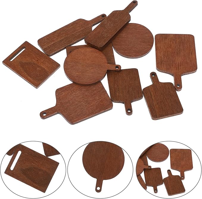 Zerodeko 10 PCS Dollhouse Cutting Board, Miniature Wooden Cutting Board Wood Chopping Charcuterie Boards Doll House Miniature Kitchen Accessory