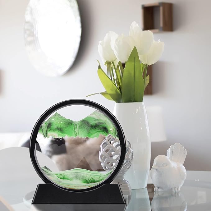 - SAND ART DÉCOR:The perfect home/office desk decoration. A natural landscape painting makes your decorative environment in the middle of landscape, quiet, natural, elegant and indifferent. Watching the different sandscape pictures formed with the flowing of sand, you can feel the magic of the creator, and every change is so natural and beautiful