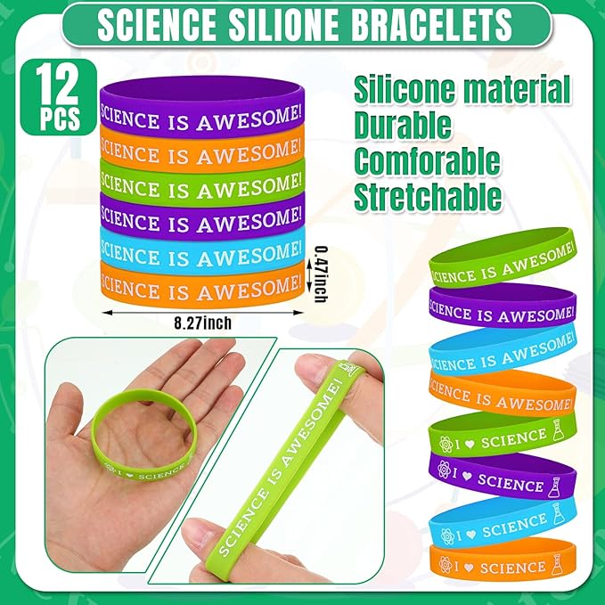 - Dependable Materials: the scientific pins are made of quality plastic and metal, cool and sturdy; The scientific bracelet wristband adopts soft silicone, comfortable to wear; scientific stickers adopt quality paper and are covered with film, so you can paste them at will; The drawstring bag is made of polyester fabric, foldable and washable, providing a nice using experience