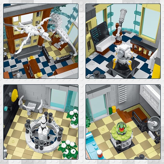- 🎈【Rich Structure】The Museum model is an impressive and unique four-story building. It has a simulated glass design on the front, providing an unobstructed view of the fascinating exhibits inside. And each floor of this house model has a theme, from the tyrannosaurus rex dinosaur fossil skeleton to the technological elements rockets, astronauts and others. Overall it is a good architectural toys.
