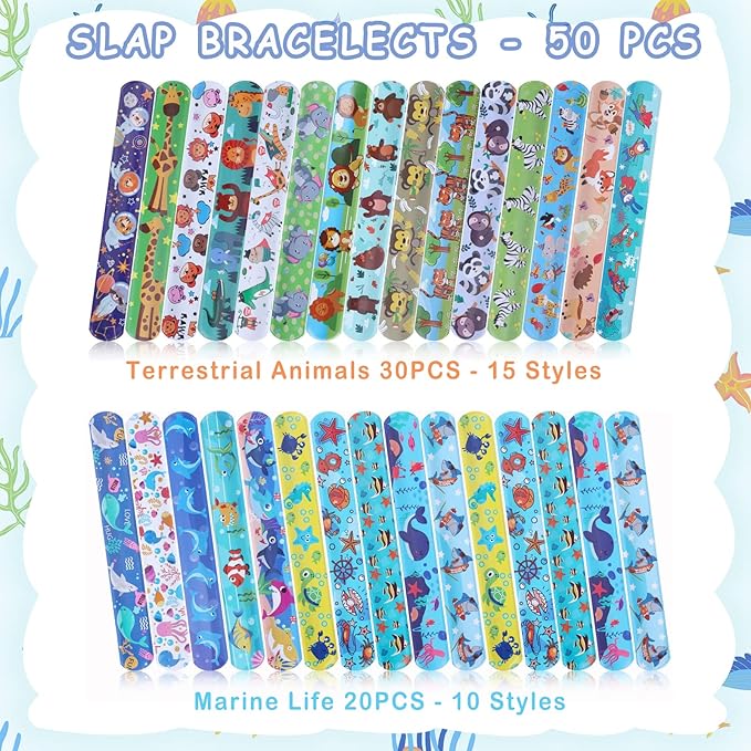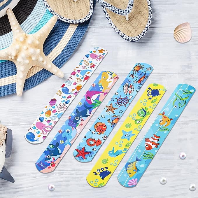 Viicoor Slap Bracelets, 50Pcs Snap Bracelet Wrisrtband for Party Favors Basket Bag Filler School Prizes Birthday Gifts Party Favors Bulk (#4-Marine Animals-50pcs)