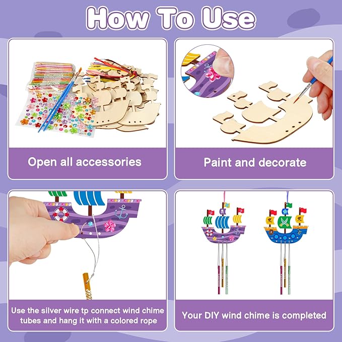 • High Quality Material:This DIY pirates ship wind chime kits for toddler are mainly made of wood, smooth surface, neatly cut, the edges are not sharp,lightweight, safe and environmentally friendly, harmless to children, so children can change the design according to their ideas, Fun and creative crafts keep them busy and enjoy the handcraft entertained.let their creativity run wild!