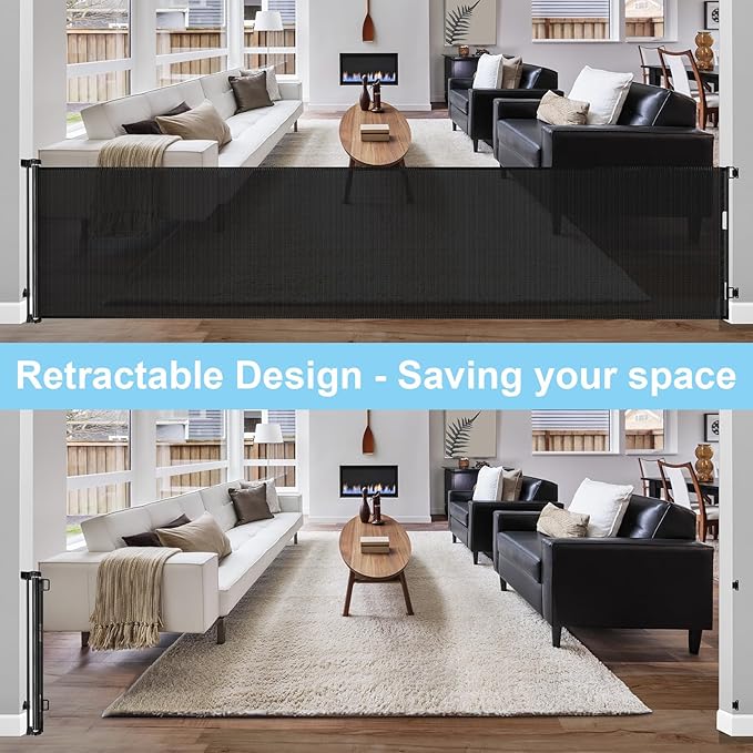 - Versatile Retractable Gate : extra wide baby gate can be used as room dividers to create a flexible area for you or your children and pets, and can also be used as an alternative to a dog crate.