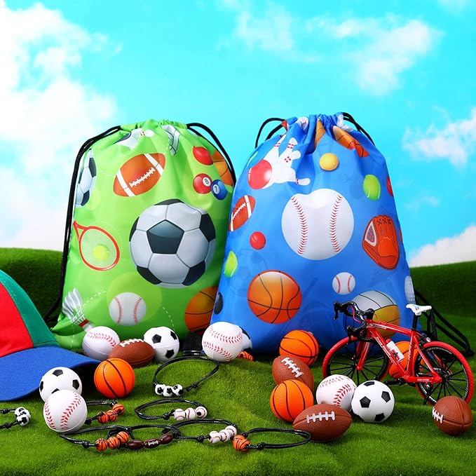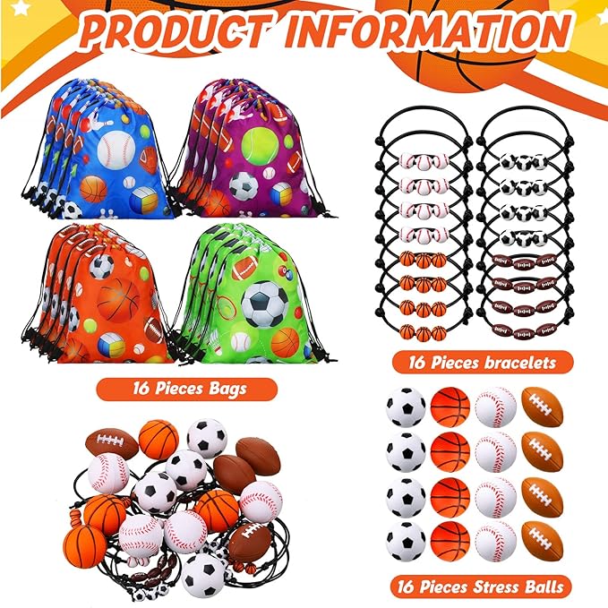 - Package Includes: you will receive 16 pcs balls drawstring bags, 16 pcs sports themed charm bracelets, and 16 pcs sports stress balls, this ideal combination can meet your sports themed party needs, very suitable for teenagers and even adults