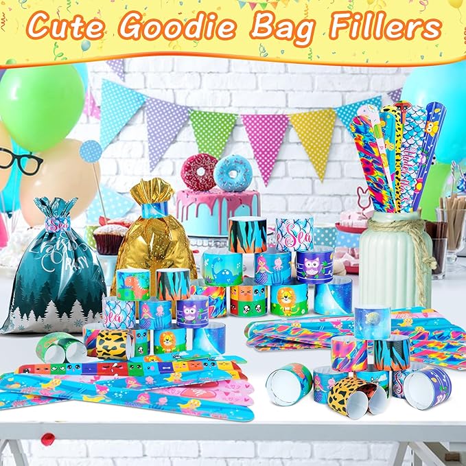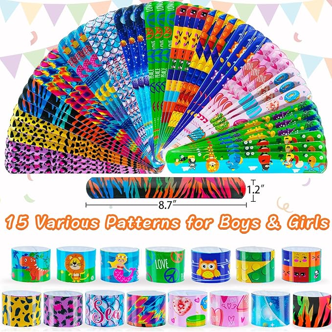 - 🌈 Diverse Uses with Good Elasticity: Great party decoration and gift ideas for kids. You can wear the slap bracelets on your wrist, ankles, and decorate for your party like on cakes, desk and vases. You may even use them as hair ties, bookmarks and gift bag ties. They come in a variety of fun designs and colors and are sure to be a hit with people of all ages.