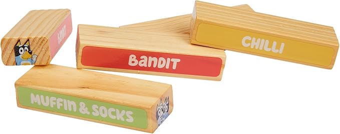 - BLUEY TOWER ADVENTURE – Take on the challenge of building a tower with 54 colorful wooden blocks featuring Bluey and Friends. Remove blocks one at a time, and watch as the tower wobbles and sways! A game of skill that promises endless fun and thrills.