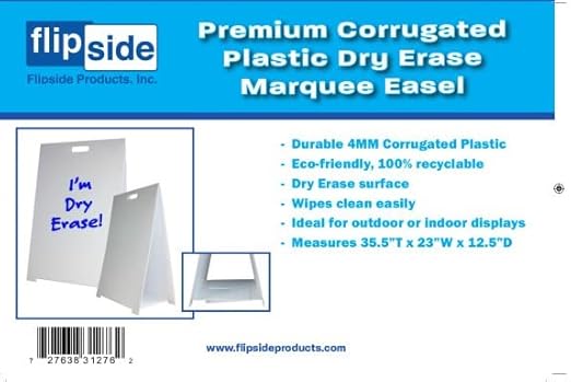 Flipside Products 35.5" x 23" Double- Sided Corrugated Plastic Dry Erase Marquee Easel, Signboard, Indoor Outdoor, Sidewalk Curb Sign, White, 4 Pack