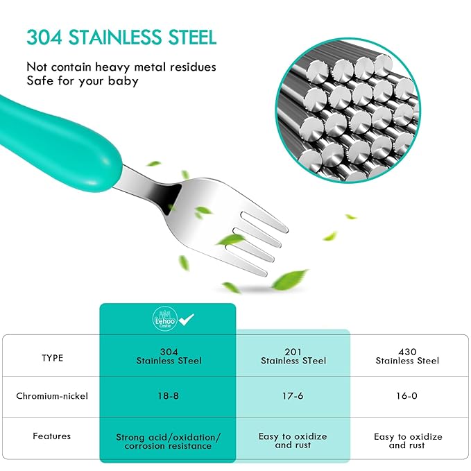 - SAFE TODDLER UTENSILS SET: Made of durable food grade stainless steel, all non-corrosive, BPA-free and easy to clean (NOT dishwasher safe to avoid color loss)