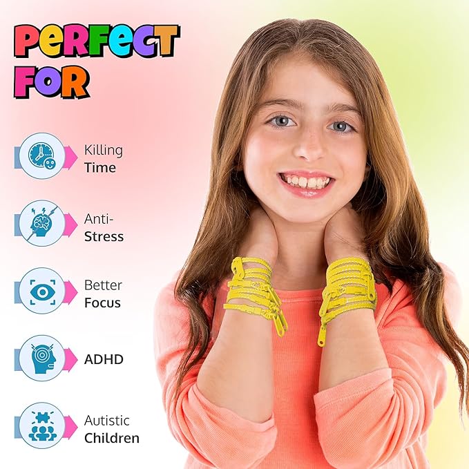 - Perfect Yellow Fidget Tools: Doubling as fidget bracelets, these wristbands offer a sensory experience. The interactive yellow zippers help to reduce stress and anxiety, providing a fun solution for kids who fidget on special yellow days.