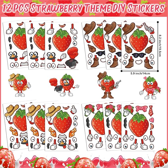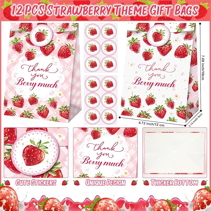 - UNIQUE DESIGN - This party favor adds a lot of strawberry theme element patterns, like anthropomorphic strawberry, milk, cow and more, vivid and lovely, which full of strong sweet vibe and creating lovely atmosphere to your party, Is every cute girl's favorite gift!