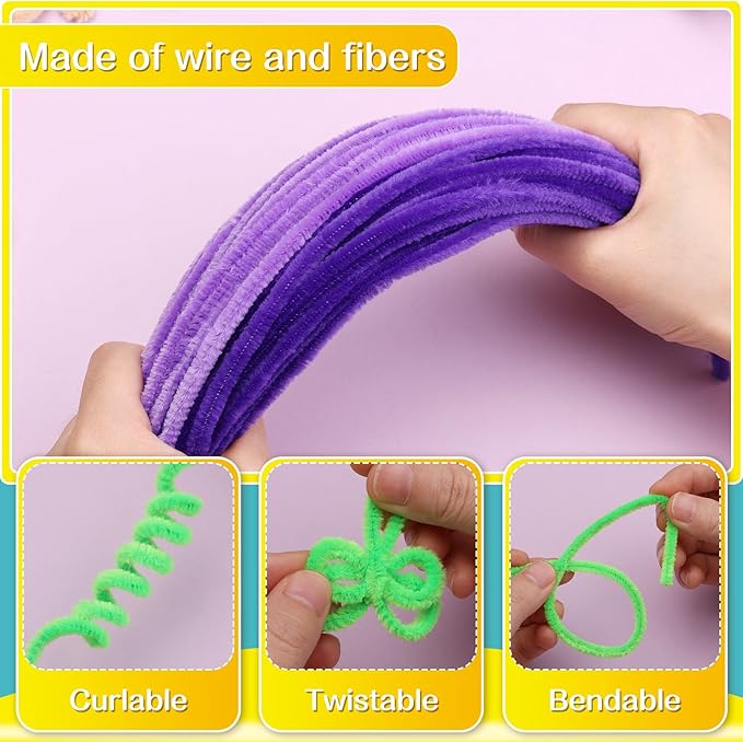- High-quality materials: High-quality pipe cleaners are made of metal wire and fiber, bendable, flexible, easy to bend, twist, bend, or wrap into most shapes. Colorful and soft, and ideal for most craft items.
