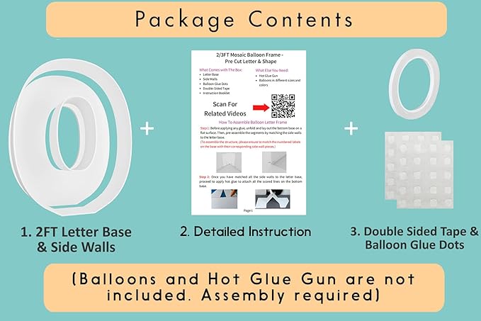 - FAST and EASY ASSEMBLY - Decorate your party like an event balloon artist! Our 2ft mosaic balloon frame letters are pre-cut to the perfect measurements, saving you the hassle of printing, measuring, and cutting templates yourself!