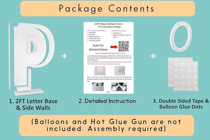 - FAST and EASY ASSEMBLY - Decorate your party like an event balloon artist! Our 2ft mosaic balloon frame letters are pre-cut to the perfect measurements, saving you the hassle of printing, measuring, and cutting templates yourself!
