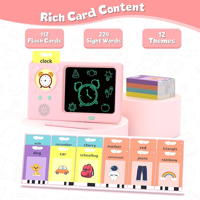 - [One Bought to Grt Two-In-One Educational Toys] : As a new educational toys for toddlers ages 1-6, It is both a LCD Writing Tablet toy and Talking Flash Cards with 224 sight words. Your child can use it to learn new words and draw pictures to enhance cognitive ability , develop speech ability and explore different possibilities - While learning new words, toddlers can hear the sound of it, see vivid pictures, and start writing and drawing.