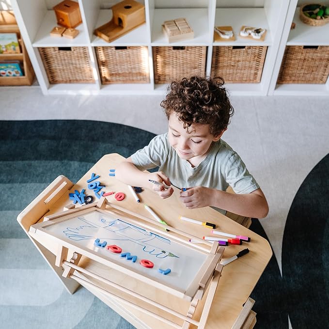- PROMOTE INDEPENDENCE AND AUTONOMY - Empower your child's learning journey with our Tabletop Easel. Built on Montessori principles, it cultivates autonomy through an intuitive easy-to-use design, collapsible frame for portability, and three preset positions for tailored comfort, enabling your child to steer their own educational journey.