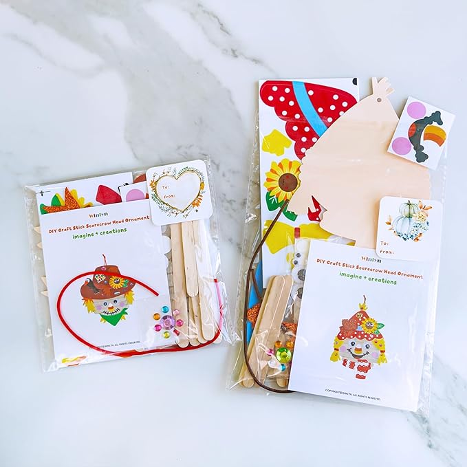 - Boost kids's creativity:Spark kids' creativity this fall with our popsicle stick scarecrow head craft. Involving kids and adults in autumn and Halloween activities, it serves as both a craft and storytelling aid, enriching children's understanding of their world. The finished ornaments enhance homes, classrooms, and gardens, boosting the fall and Halloween atmosphere. The kits also make delightful party favors, providing a playful alternative to candy for kids. Copyright (c) Winlyn.