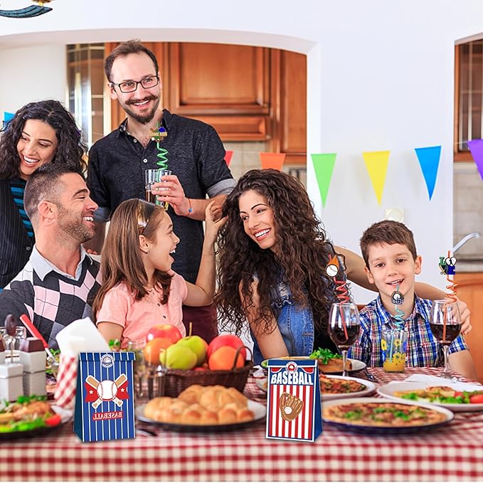 - ENJOY PARTY TIME - Baseball party favors are designed with classic baseball elements, such as red, white and blue, three main color, which makes this party supplies vibrant. We hope children can share the joy with their friends and families.