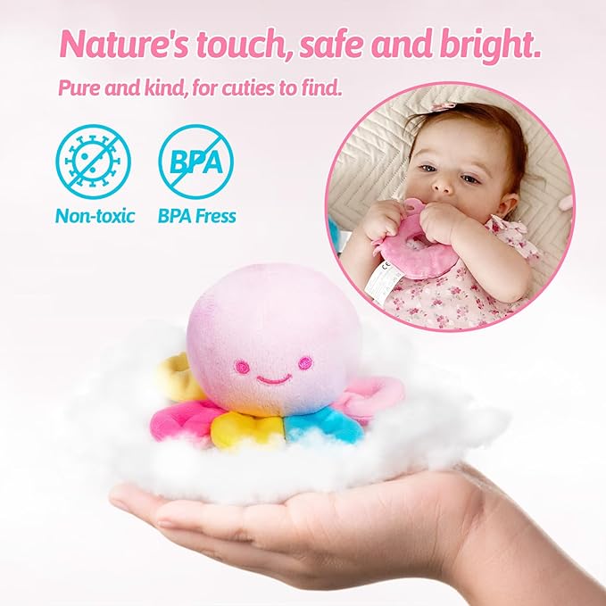 - 🌈SENSORY TOYS: This Little Mermaid set is a fun way to stimulate toddlers' senses from touch, sight and sound. The ring shaped crab, spherical octopus, and pentagram shaped starfish will stimulate your child's ability to grasp unheard shaped objects. The colorful tentacles of the octopus can enhance your child's color perception. The crunching sounds made by starfish, the bell sounds made by dolphins and crabs, and the squeaking sounds made by octopuses can make infants have fun.
