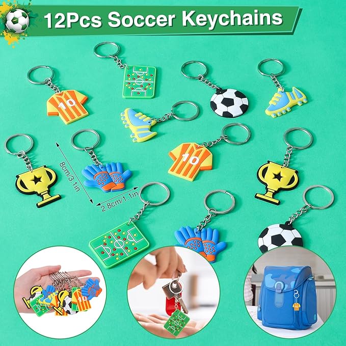- 48Pcs Soccer Party Favors Supplies - You will get 12 non-woven soccer goodie bags, 12 soccer keychains, 12 soccer temporary tattoo stickers, 12 soccer theme slap bands. From personalized soccer treat bags to stickers, these favors will not only add to the decor, but also provide your guests with a keepsake. Your kids, especially those who like to play soccer, will love these fun and unique soccer gifts. Make your soccer party unforgettable with these amazing soccer party favors